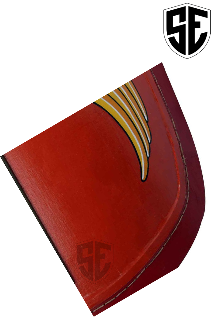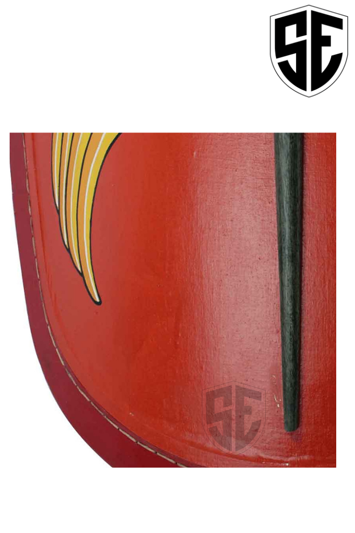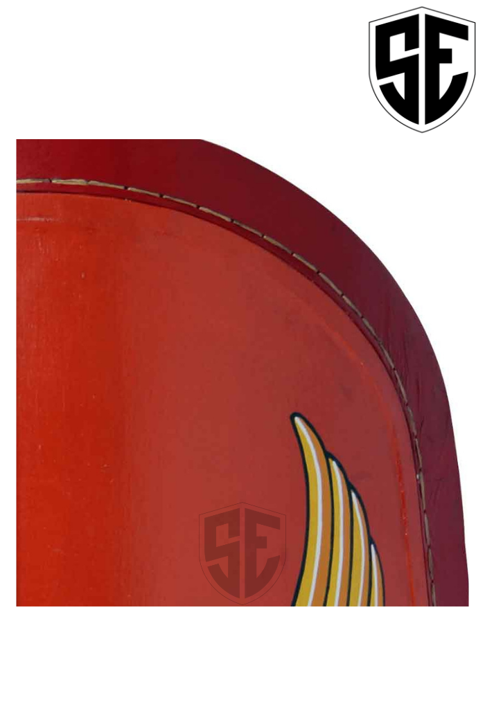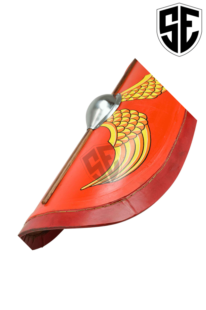 Description:- This Republican Scutum is a classic piece of kit that no self-respecting Roman soldier would ever be without it. This shield is impressively large and features a design like Roman soldiers because of its red and yellow colour scheme. The shield was largely considered to be a Roman soldiers first and main sort of protection for his or her body. Roman shields attended large offering coverage and protection for many of the soldiers body including the torso and therefore the legs. The dimensions of a Roman shields also meant that they might even be locked together to make during a testudo formation (also referred to as a tortoise formation) to make a near-impenetrable shield wall. This shield features an oblong shape with rounded edges also as a red face decorated with a steel-metal shield boss and two pairs of wings that flare from the middle of the shield. The shield measures approximately 50 inches tall and approximately 34 inches wide. Counting on your grip and your personal strength, you'll hold this shield vertically or horizontally, changing what and the way this shield handles and defends. As its name suggests, this Republican Scutum hails from the Republican era of the Roman Empire . If you're looking to make a classic and authentic looking Roman legionary or auxiliary than you'll need this impressive shield and if you're not a re-enactor, you'll still add this amazing Republican Scutum to your collection and display it for all to ascertain .